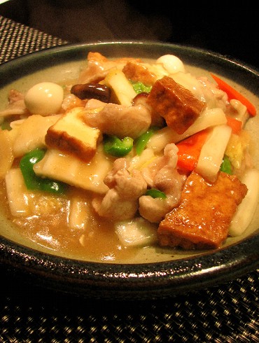 6、 鍋であんを作り、蒸しあがった5に静かに注ぎます。