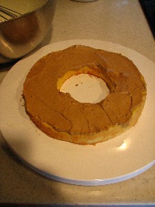真ん中でスライスして、コーヒークリームはさんで、周りに生クリーム。