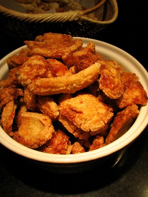 生姜汁などなどでしっかり下味をつけて、片栗粉まぶして焼いてから、